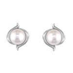 Each round white Akoya cultured saltwater pearl is embraced by sweeping curves of 18ct white gold. They are fitted with posts and butterfly backs. These pearl earrings are packaged in our green Faller earring box. The perfect accessory for a bride, these beautiful stud earrings add elegance and sophistication to any occasion. They make a lovely Christmas or birthday gift.
