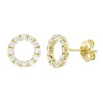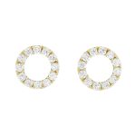 Each 18ct gold Eternal Circle stud earring is a circle of twelve claw set diamonds with an 18ct yellow gold post and butterfly back. Designed and made by Faller, they are packaged in our distinctive green Faller earring box.