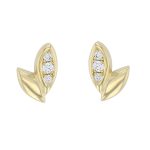 These Falling Leaves earrings are made in all 18ct yellow gold. Each stud has a plain leaf and a grain set diamond leaf. Designed and made by Faller, the stud earrings are packaged in our green Faller gift box. These earrings are also available in 18ct white gold.