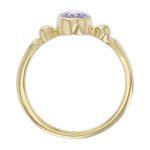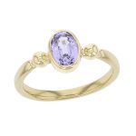 This Faller Kandy ring features a lively light purple transparent oval rose cut sapphire. It is rim set with bead detail on either side on a simple curved band. This pretty contemporary ring is packaged in our green Faller ring box. A lovely birthday or Christmas gift, especially for those born in September.