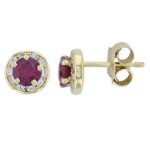 Each round brilliant cut ruby centre stone is held by five claws and is surrounded by a halo of claw set round brilliant cut diamonds.  Each stud has an 18ct yellow gold post and butterfly back.  Designed and made by Faller, they are packaged in our green Faller ring box.